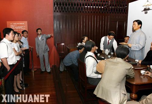 1952年9月,中共一大会址辟为革命纪念地对外开放。1984年,邓小平同志为一大会址题写了纪念馆馆名。如今,步入会议原址的厅堂,桌、椅、玻璃花瓶、白底彩绘茶具及电灯等均以原貌陈列,精细到当年使用过的烟缸、火柴盒架及电灯开关,也不例外。