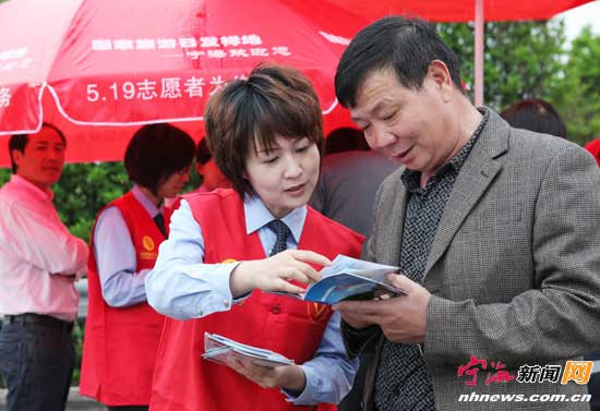 宁海新闻网讯 为更好地宣传与迎接5·19中国旅游日,“五一”假日期间,团县委和县志愿者协会组织近80名青年志愿者,在公路、铁路等交通节点客流量较大区域,为过往游客提供景点指路、旅游咨询、免费茶水等服务,并分发有关5·19中国旅游日宣传资料。图为志愿者正在高速公路宁海出口热心为游客服务。 (惠广亮葛渗华摄)