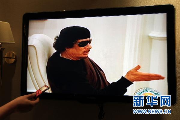 这是利比亚国家电视台5月11日播出的利领导人卡扎菲会见东部地区部落首领的视频截图。新华社/法新