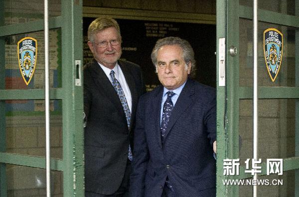 5月15日,国际货币基金组织总裁多米尼克·斯特劳斯—卡恩的律师威廉·泰勒(左)和本杰明·布拉夫曼离开美国纽约警察总部。多米尼克·斯特劳斯—卡恩的妻子安妮·辛克莱15日说,相信丈夫清白。法国方面怀疑,斯特劳斯—卡恩遭“设计”;酒店方面则声辩,成为性侵犯目标的女服务员平时工作表现良好。新华社/路透