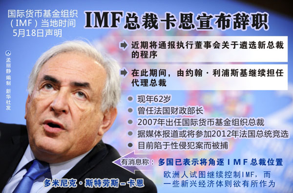 图表:IMF总裁卡恩宣布辞职 新华社发。