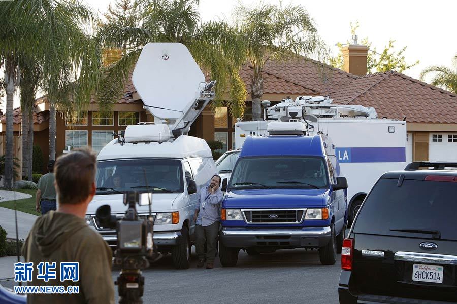 5月18日,电视工作人员在美国加州贝克斯菲尔德市中心一处社区据信是米尔德丽德·巴埃纳的住所前录制节目。新华社/路透