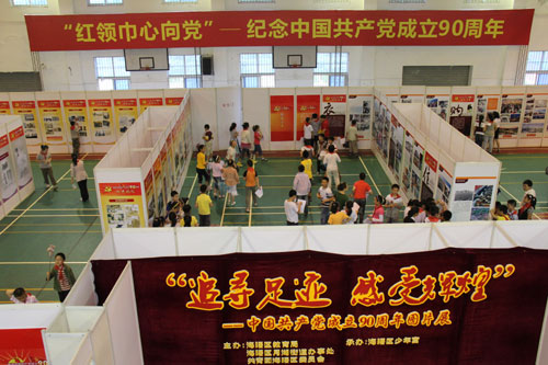 中国宁波网讯 为迎接中国共产党90周年华诞之际,更好地对青少年学生进行形象生动的热爱中国共产党,热爱社会主义祖国教育,由海曙区少年宫举办的“追寻足迹、感受辉煌”——中国共产党成立90周年大型图片展顺利结束。此次展览为期15天,海曙区各中小学师生以及社会各界人士纷纷前来参观,参观人数多达四千多,受到了来宾与师生们的高度评价。