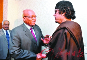 今年4月,祖马与另外4名非盟国家领导人前往利比亚,充当调停人。卡扎菲当时同样提出北约停止空袭的要求,遭拒绝。