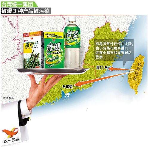 另外,国家质检总局也发布公告,要求从6月1日起,暂停进口台湾方面通报的问题产品生产企业生产的运动饮料、果汁、茶饮料、果酱果浆、胶锭粉类产品和食品添加剂。在5月31日公布的暂停进口名单中,除了统一芦笋汁之外,还包括统一甘蔗汁、统一芭乐汁、统一金桔柠檬汁。记者昨日在淘宝网上搜索,依然可以找到相关产品出售。