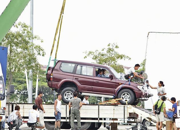 谢霆锋、周杰伦在吊起的车内演对手戏
