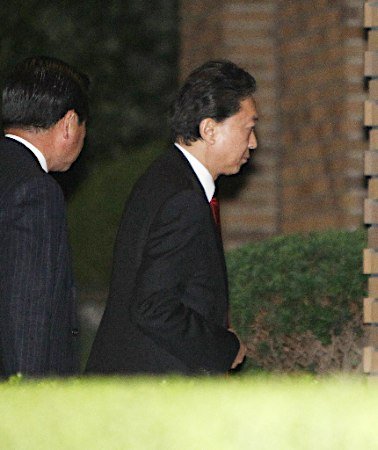昨夜走进首相官邸的日本前首相鸠山。