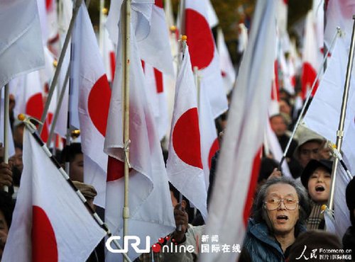2010年12月1日,日本东京,日本民众举行示威游行,要求首相菅直人及其内阁下台。人民图片/Fotomore.cn