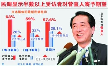 资料图片:上任伊始,民调显示半数以上受访者对菅直人寄予期望