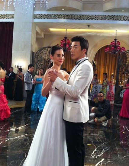 Emily上传的剧照,张柏芝身穿白色晚礼服与同样身着白色西服的权相佑翩翩起舞。虽然面露笑意,可是细心的粉丝发觉张柏芝的笑容很尴尬。