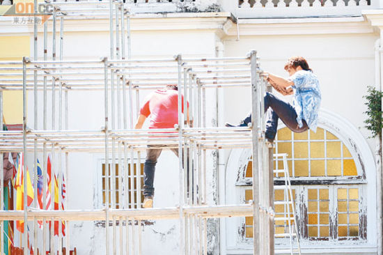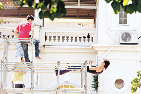 谢霆锋与周杰伦在铁架上爬来爬去,就像猴子一样