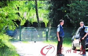 6日,安保人员在德国一家被怀疑是疫情源头的企业前守卫。
