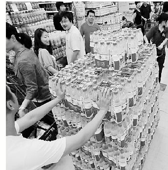 值班经理毛女士说,截止到昨天下午4点半,超市共销售各类矿泉水24812瓶。“我们已经在叫货了,让供应商赶紧给我们供货。”