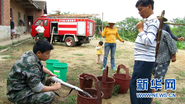 华容县东山镇群强村旱情严重,东山镇党委和政府每天安排消防车送水,缓解群众用水燃眉之急(6月1日摄)。新华社记者目击了历史罕见的“湖枯”对环洞庭湖岳阳、益阳、常德三市带来的重创,也眼见了百万湖区人民、20多万套机械设备大战旱魔的壮观场景。所见所闻,最大的感触是:党心连民心,党组织、党员始终是群众的主心骨,始终是冲在最前线的先锋队。新华社记者 苏晓洲 摄