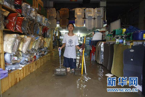 在劝业场,一名副食店老板说,水从上午就开始积起来,起初车子还能冲过去,但从中午开始就有大腿深,一些小轿车进去就趴窝。