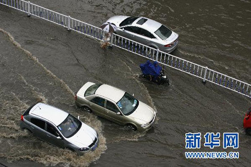 昨日,全市主次干道、小巷均出现不同程度渍水,发展大道、建设大道、解放大道因渍水造成交通拥堵,一些车辆淹入水中动弹不得。
