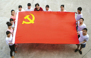 6月23日,一幅长288厘米,宽192厘米的湘绣党旗在位于湖南益阳市的湖南工艺美术职业学院完成。这面巨幅党旗从设计到封针历时一个多月,由湖南工艺美术职业学院的师生联手采用传统的平针绣法绣制而成,作为献给党的90岁生日的特殊礼物。(新华社发)