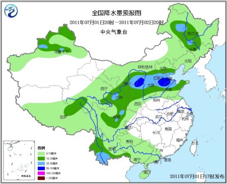 人民网北京7月2日电(记者 刘军涛)据中央气象台预计7月2日至4日,北方地区雨水的范围将逐步扩大,强度也将明显加强。西北地区东部、内蒙古中东部、华北、黄淮、东北地区等地将出现明显降雨过程,其中华北中南部、黄淮中东部、东北地区东部等地部分地区累计降雨量有50~80毫米,河北中部、天津、山东东北部等地局部地区可达100~120毫米,西北地区东南部局地有50~70毫米。
