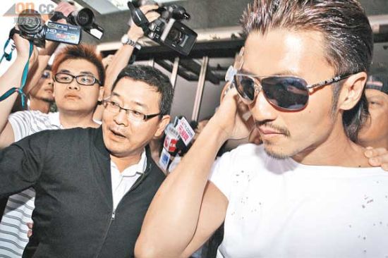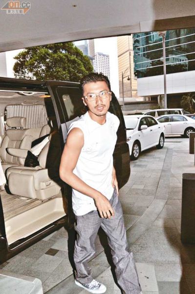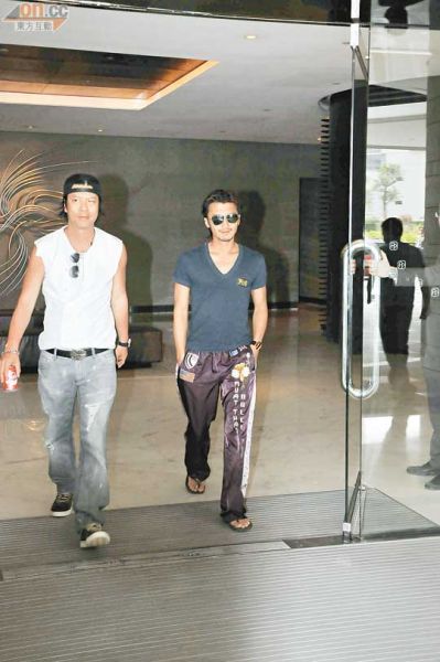谢霆锋(右)昨天(7月10日)下午由发型师Ricky Kwok陪同步出栢舍,前往开工拍广告。