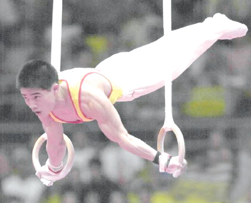 7月15日,东单,张尚武展示体操动作。薛珺 摄