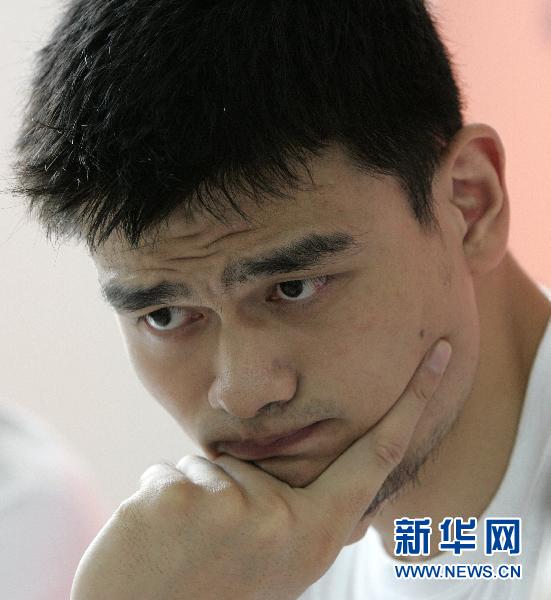 姚明,眼神中充满着坚毅与信心,一个为篮球而生的人。 图为2007年7月4日,姚明在上海特奥会新闻发布会上。 新华社发