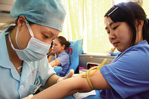 7月酷暑,气温节节攀升,市民外出活动减少导致街头义务献血人员骤减,血液储备量告急。近日,小港街道组织义务献血活动,机关工作人员、村企职工、海警官兵和周边群众积极响应。当天,400多名爱心人士参加了献血活动,206名成功献血,献血总量达69300毫升。(厉晓杭 张国坚 摄)