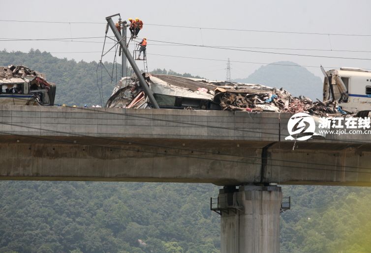浙江在线7月24日讯(记者 王坚颖)7月23日20时27分,北京至福州的D301次列车行驶至温州市双屿路段时,与杭州开往福州的D3115次列车追尾。图为救援现场。