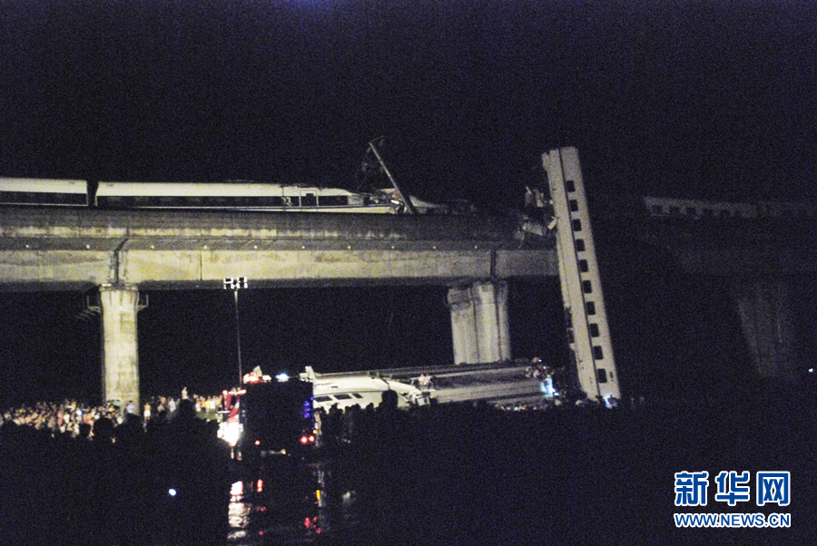 7月23日晚,北京南至福州D301次列车与杭州至福州南D3115次列车在浙江温州境内发生追尾事故。新华社发(小刀 摄)