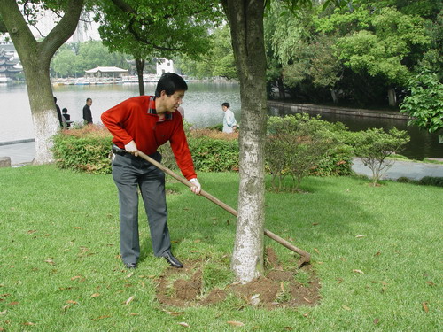 业务上,他深知专业知识在园林单位的重要性,亲力亲为同养护人员一起观察草皮、植物生长情况,遇到干旱、病虫害多发时节,就和职工连日工作在第一线,想对策、找办法。为使景区养管质量更上新台阶,他比照先进、拉高标杆,主动学习、探索科学发展新方法,在创新和提高上下功夫,力争始终处于同行业的先进水平。