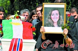 29日,挪威恐怖袭击的第一位遇难者下葬。