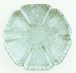 哥窑青釉葵瓣口盘俯视图