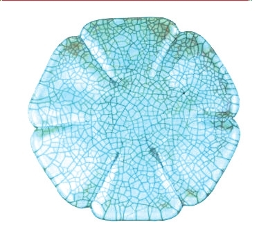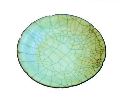 受损宋代哥窑青釉葵瓣口盘正面原貌。