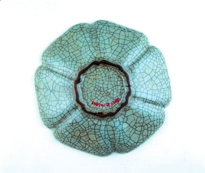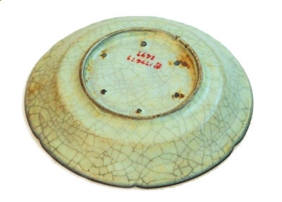 受损宋代哥窑青釉葵瓣口盘底部原貌。