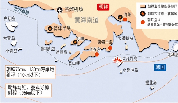 记者:据韩国联合参谋本部官员10号透露说,当天下午1点左右,从朝鲜龙媒岛南侧传出三声炮响,韩方根据推测认为其中一枚炮弹落在韩朝有争议的“北方界线”附近。随后韩方于10号下午2点左右,用三枚K-9炮进行应对射击,炮击并没有造成人员伤亡。