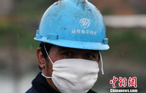 图为在为铬渣“盖房”的化工厂工人。中新社发 任东 摄