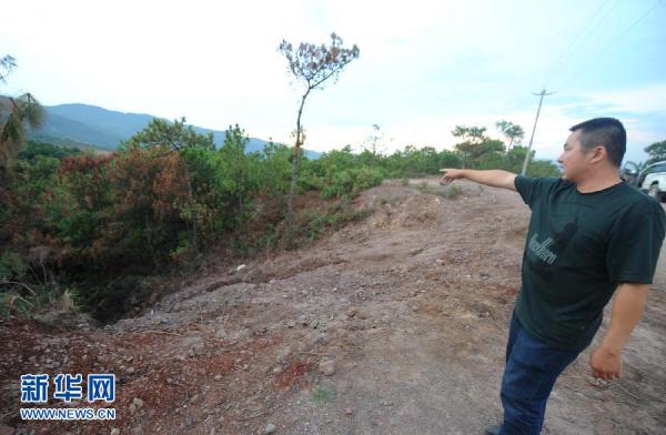 8月14日,当地环保部门监察大队副队长在铬渣倒入处介绍情况。新华社记者 陈海宁 摄