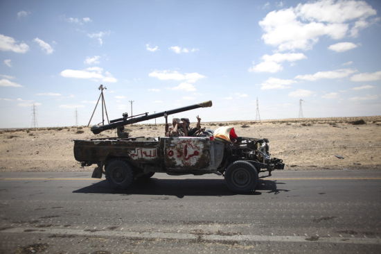 布雷加港附近,反政府武装人员开车行进。新华社/美联