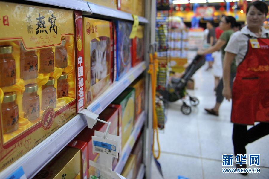 8月18日拍摄的浙江海宁市一家大型超市内销售的燕窝饮品,据商场销售人员介绍,血燕已全部下架处理。