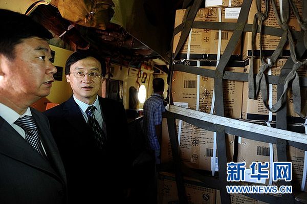 8月19日,在利比亚班加西机场,中国驻埃及大使馆参赞马建春(左一)和中方驻班加西临时工作组代表王奇敏参赞在机舱内清点中方援助利比亚的紧急人道主义救援物资。中国红十字会向利比亚提供的首批紧急人道主义救援物资,于当地时间19日上午抵达利东部城市班加西。首批运抵物资共计90吨,包括大米、油及药品,于18日自天津滨海国际机场启运。中国红十字会计划向利比亚提供价值5000万元的紧急人道主义救援物资。下一批物资将于近日抵达利比亚首都的黎波里。新华社发(默罕默德·欧迈尔摄)