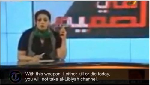 报道称,该主持人手持枪支的视频被一家社会媒体网站公布,目前仍未核实其真实性。该主持人面对摄像头,挥舞着手中的手枪,大声说道:“无论今天我是死是活,有了这把枪,你们就夺不走al-Libiya电视频道,你们也夺不走其他电视频道,夺不走的黎波里,夺不走整个利比亚。”“我们这里已经全副武装。即使是那些没有武器的人也愿意做人墙,成为保卫我们频道的烈士。”