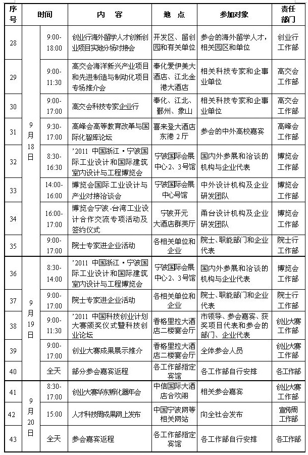 ’2011中国浙江·宁波人才科技周主要活动日程安排