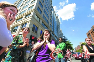 23日,地震发生后人们纷纷逃到华盛顿街头。