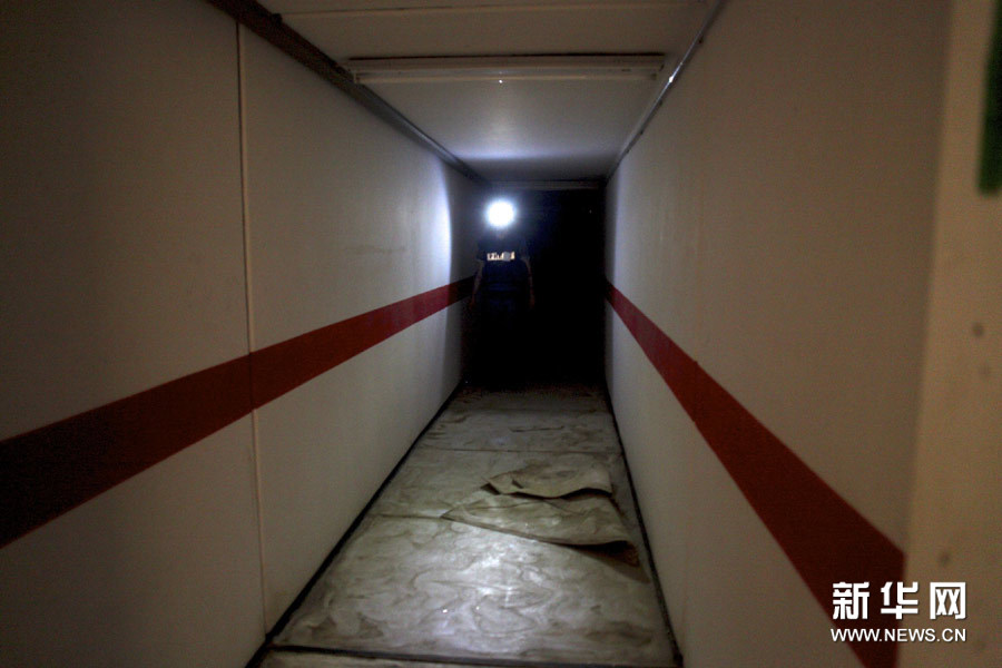 8月25日,在利比亚首都的黎波里阿齐齐亚兵营,一名记者在卡扎菲的逃生密道中采访。据称,卡扎菲很有可能从此逃走。这条密道四通八达,可以抵达机场,“烈士广场”(前称“绿色广场”)和动物园(里克索思豪华宾馆旁)。
