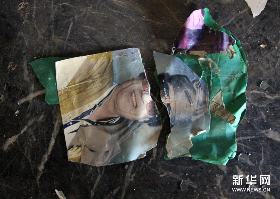 这是8月25日在利比亚首都的黎波里阿齐齐亚兵营拍摄的卡扎菲的照片。