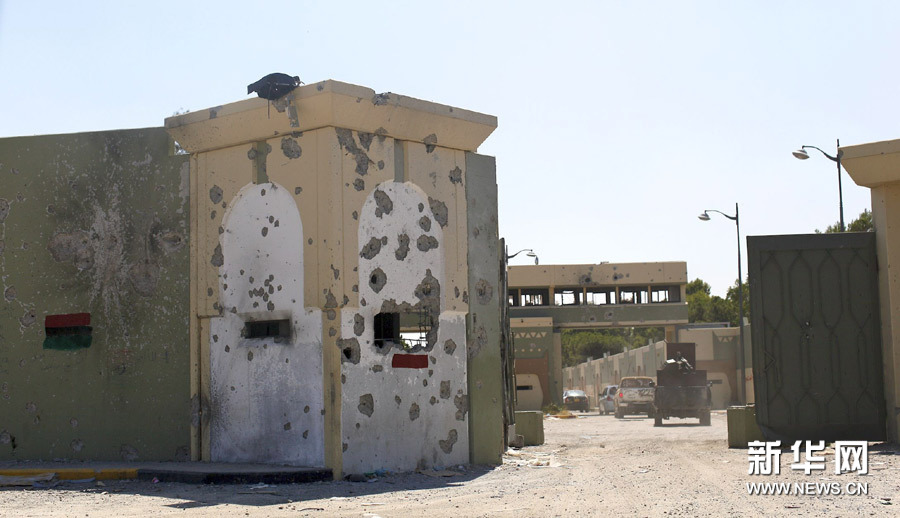利比亚反对派在23日攻入被视作卡扎菲权力象征的阿齐齐亚兵营。阿齐齐亚兵营占地约4公顷左右,四周环绕高墙,足有4米高、0.5米厚,全部用钢筋水泥砌成。新华社记者才扬摄 图片来源:新华网