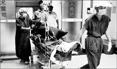 8月31日凌晨零点46分,伤者李全朝从手术室推出。《合肥晚报》供图