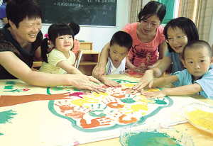 昨日,江东朝晖社区组织小朋友开展“手心相连颂师恩”活动,用手印画喜迎即将来临的教师节。