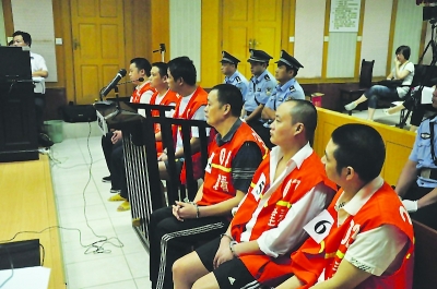 昨天上午9点,6名被告人被带进法庭,6人按第一至第六被告排列,分别是张运能、李业富、何明、王克金、郑德明、王国庆,除了王国庆外,其他几个人都是安徽人,文化程度也都不高,在小学到初中之间。