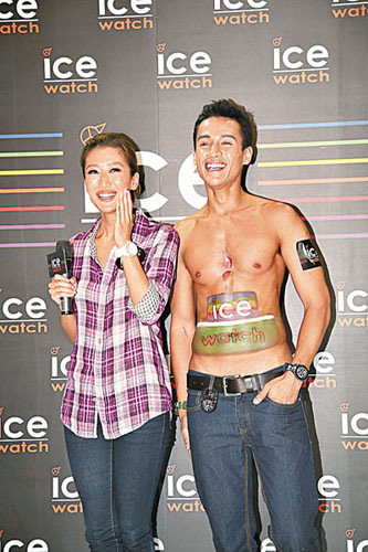 谢婷婷生日,大会特别安排半裸男模在胸口画上生日蛋糕为她祝贺(图来自香港文汇报)