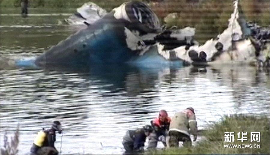 俄罗斯紧急情况部7日发布消息说,一架雅克-42型客机当天在俄西部雅罗斯拉夫尔州坠毁,导致43人死亡。 这是飞机坠毁现场的电视截图。新华社/法新